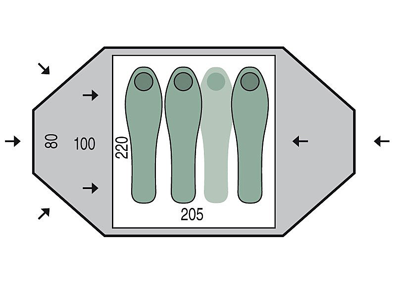 Taifun 3 е универсална, триместна палатка с класическа носеща конструкция.